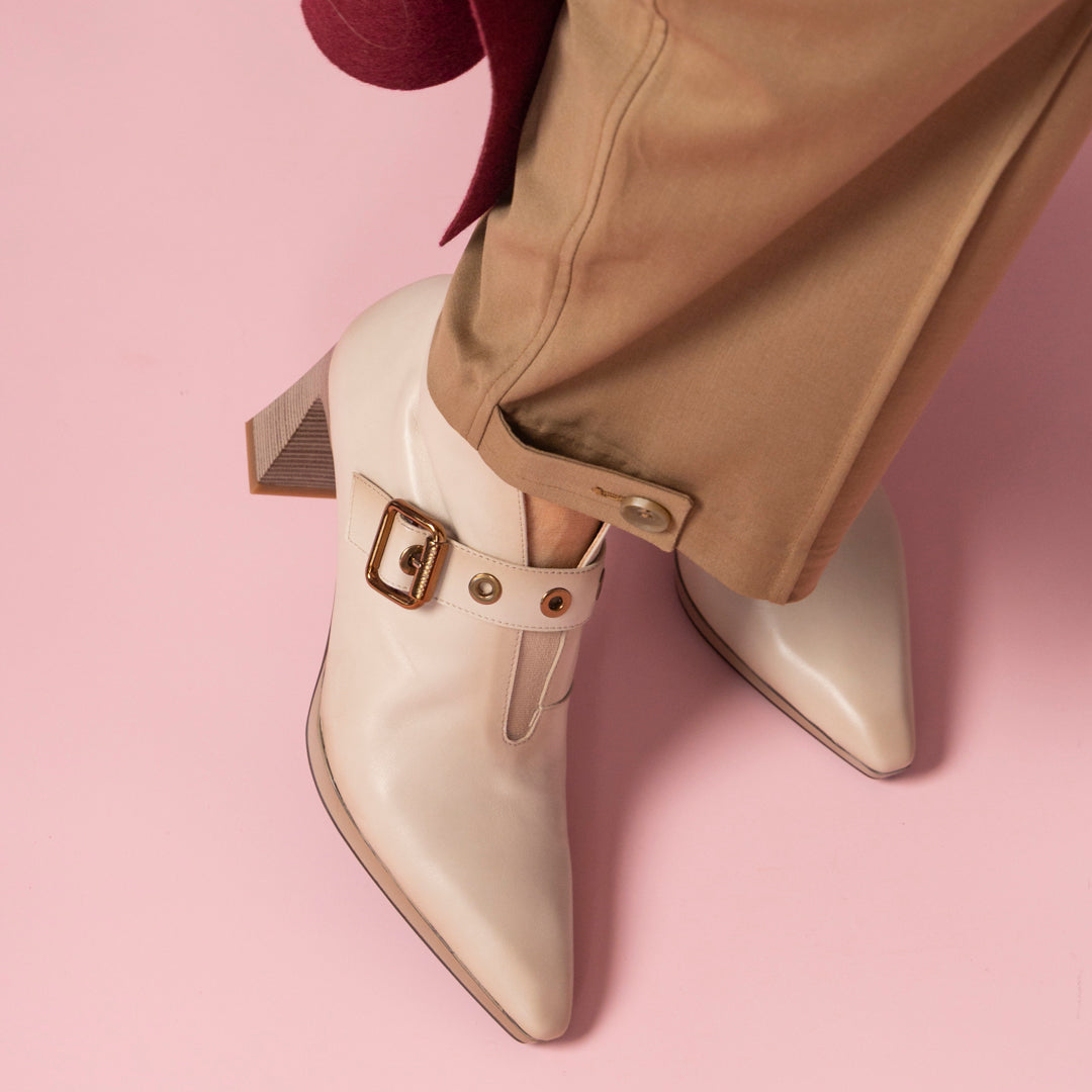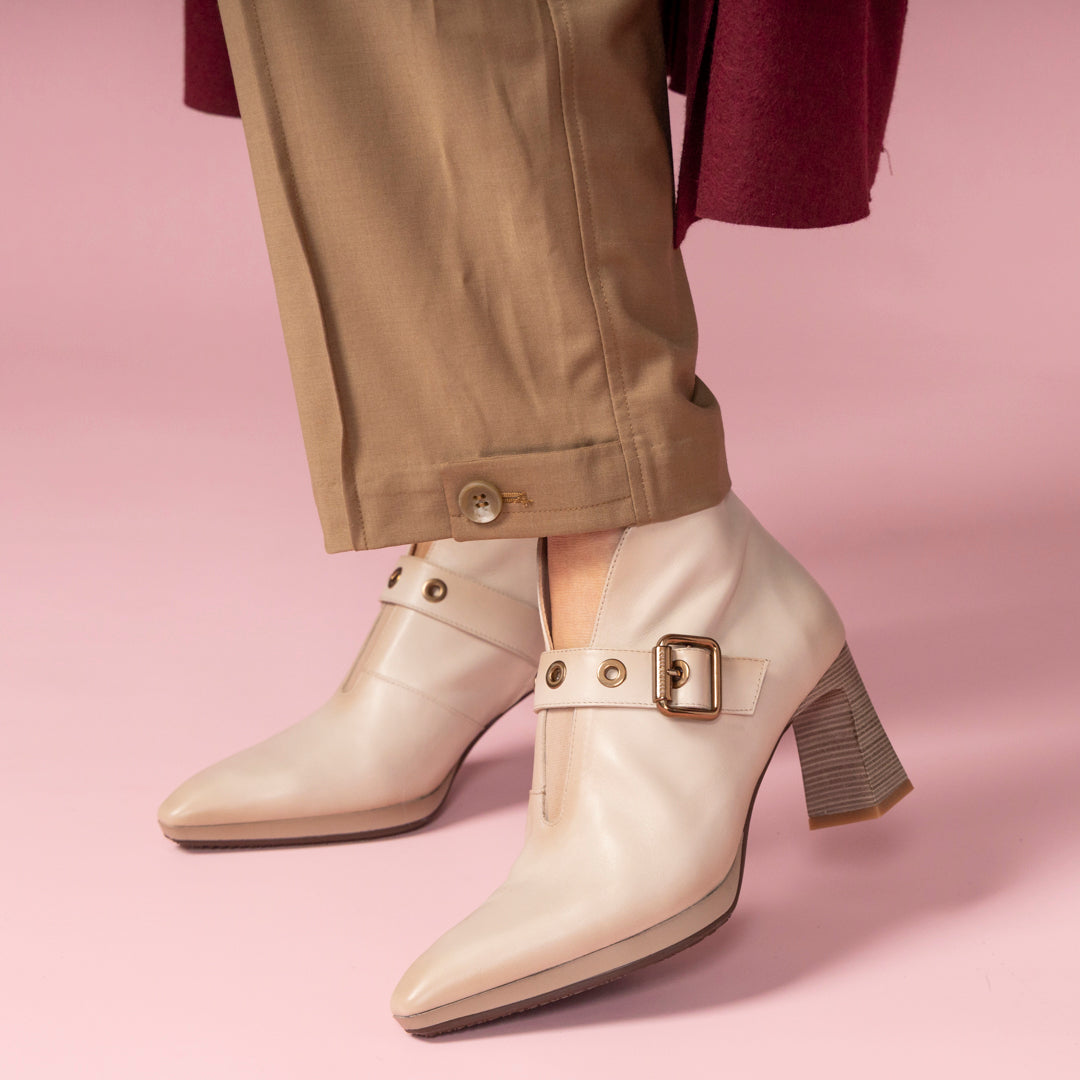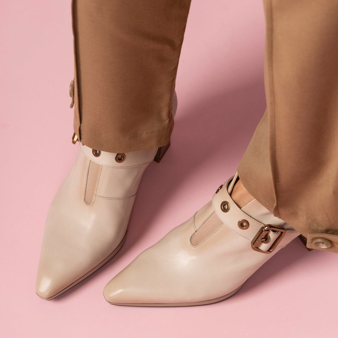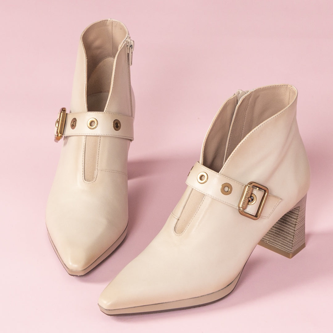 This beautifully crafted cream ankle boot by Hispanitas is your answer to refined, everyday dressing. Soft, buttery leather wraps the foot with ease, while the softly pointed toe creates a flattering, elongated silhouette that feels both modern and timeless.