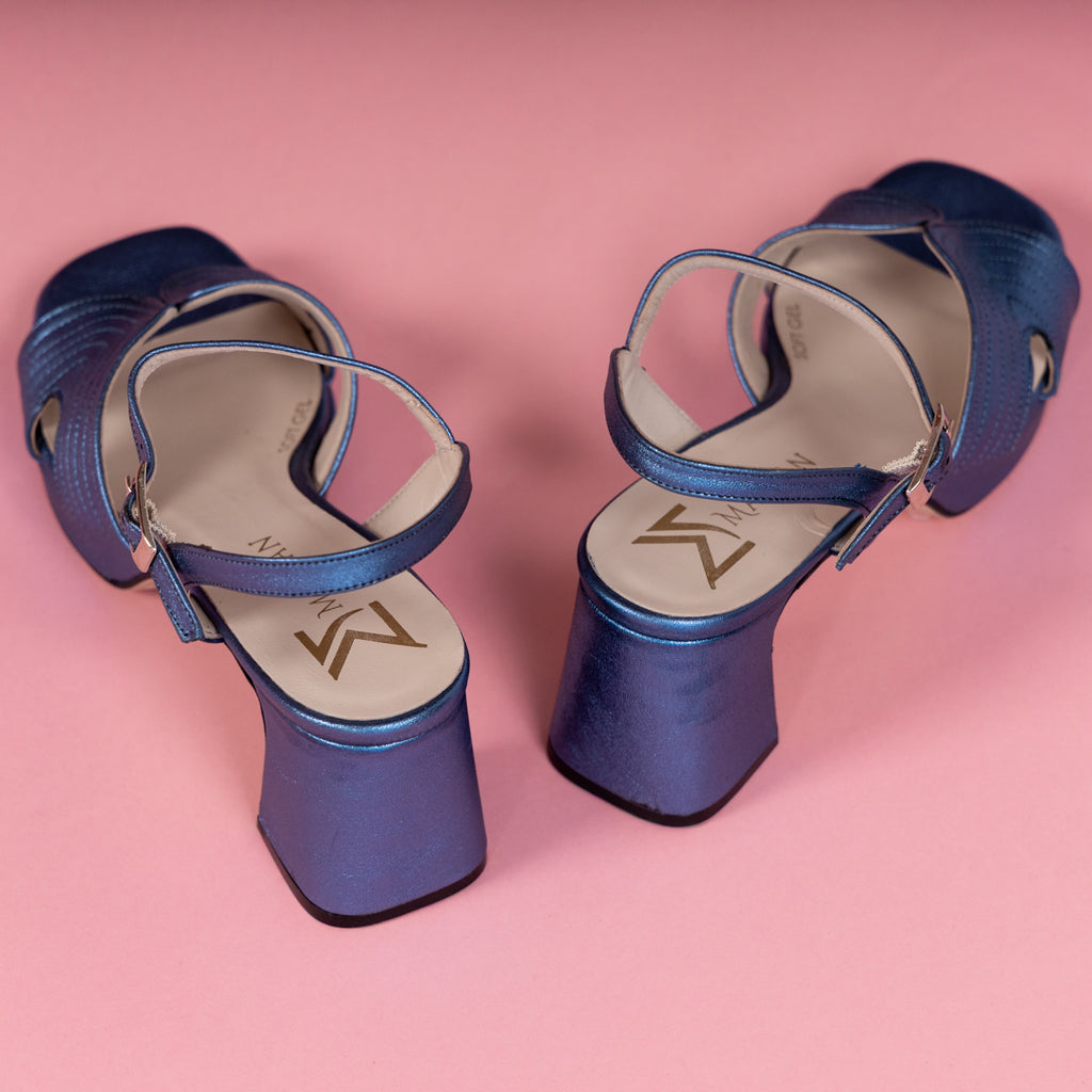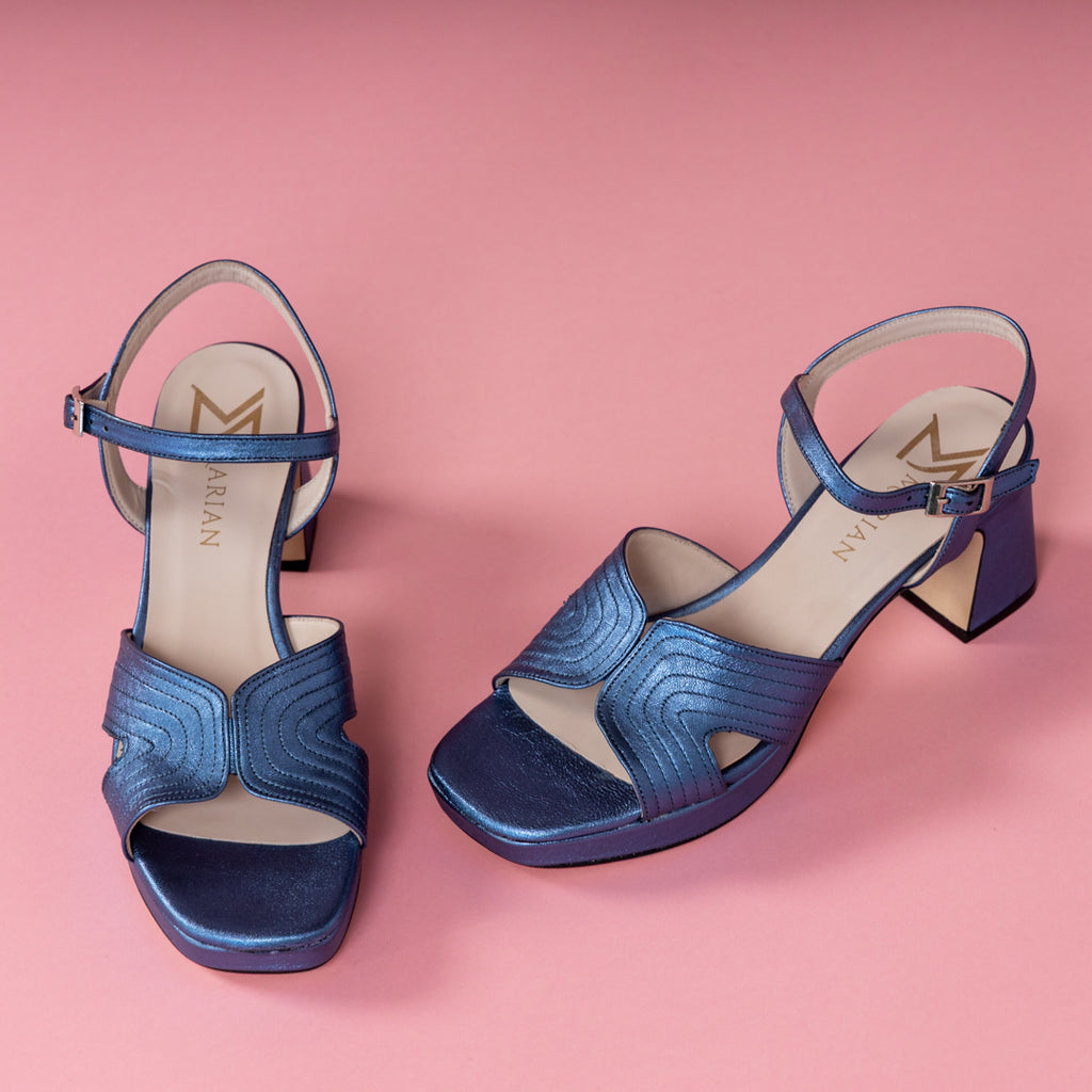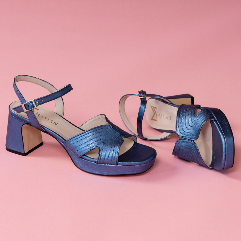 Modern glamour meets everyday wearability in this striking platform sandal from Marian. Crafted in Spain in a luminous metallic blue, the design combines bold colour with architectural lines for a statement finish.