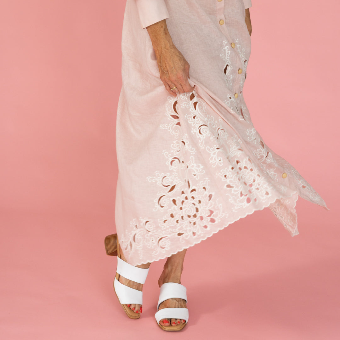 With its clean lines and softly squared toe, Fevello transitions seamlessly from casual daywear to a summer evening dinner on the boardwalk. The stacked heel provides subtle lift while maintaining all-day comfort, making it a versatile favourite for warm-weather dressing.